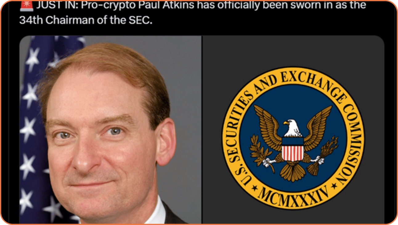 🏛️Paul S. Atkins, appointed by Trump, was sworn in as the new U.S. SEC chair 🤝